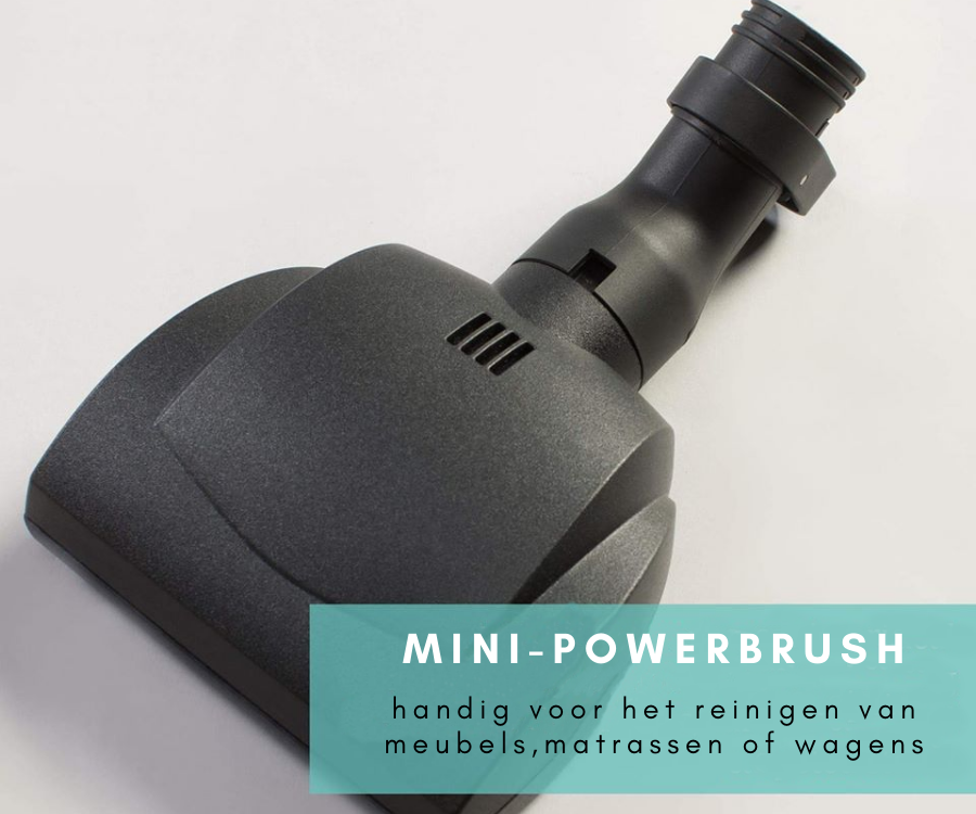 De mini-powerbrush is een stuk kleiner dan de powerbrush maar even krachtig. Dit maakt hem superhandig. Het grondig reinigen van meubels, matrassen, trappen of het interieur van je wagen kan nu nog vlotter. Ook de mini-powerbrush is uitgerust met een krachtige doch stille motor. De elektrische aansluiting zit weggewerkt en klikt gewoon op de aansluitbuis van de Ritello.